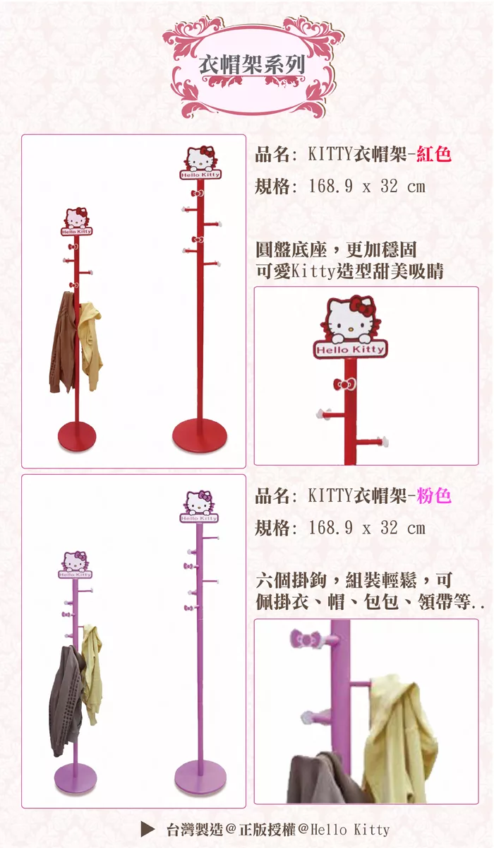Hello Kitty 台灣製DIY木質衣帽架(三麗鷗正版授權)-粉色